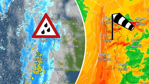 Starkregen und Sturm in Südwesteuropa