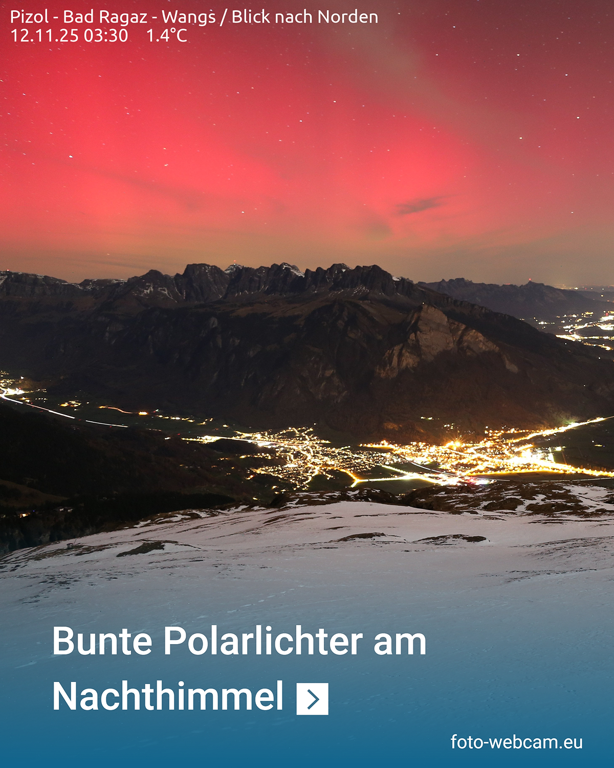 Weit verbreitet sind in der Nacht Polarlichter über den Himmel getanzt, so wie hier im Sarganserland.